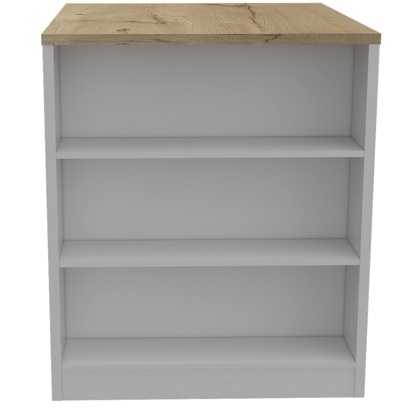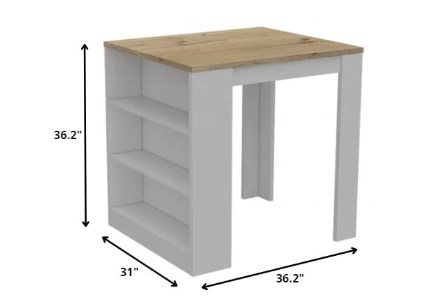 Add more counter space and storage to your kitchen with this amazing pine and white dining table and kitchen counter combination. The three open shelves for storage or decor display are perfect for storing kitchen essentials or even decorating your interior with knick-knacks and display pieces, allowing you a stress-free kitchen environment where you can cook to your heart's content without the worry of clutter and lack of storage space. The sturdy frame can also be used as a side dining table, giving you the luxury of having a multi-purpose piece that can transition from a meal prep station to a charming dining table for hosting meals with family and friends. 36.2' x 36.2' x 31.1'
