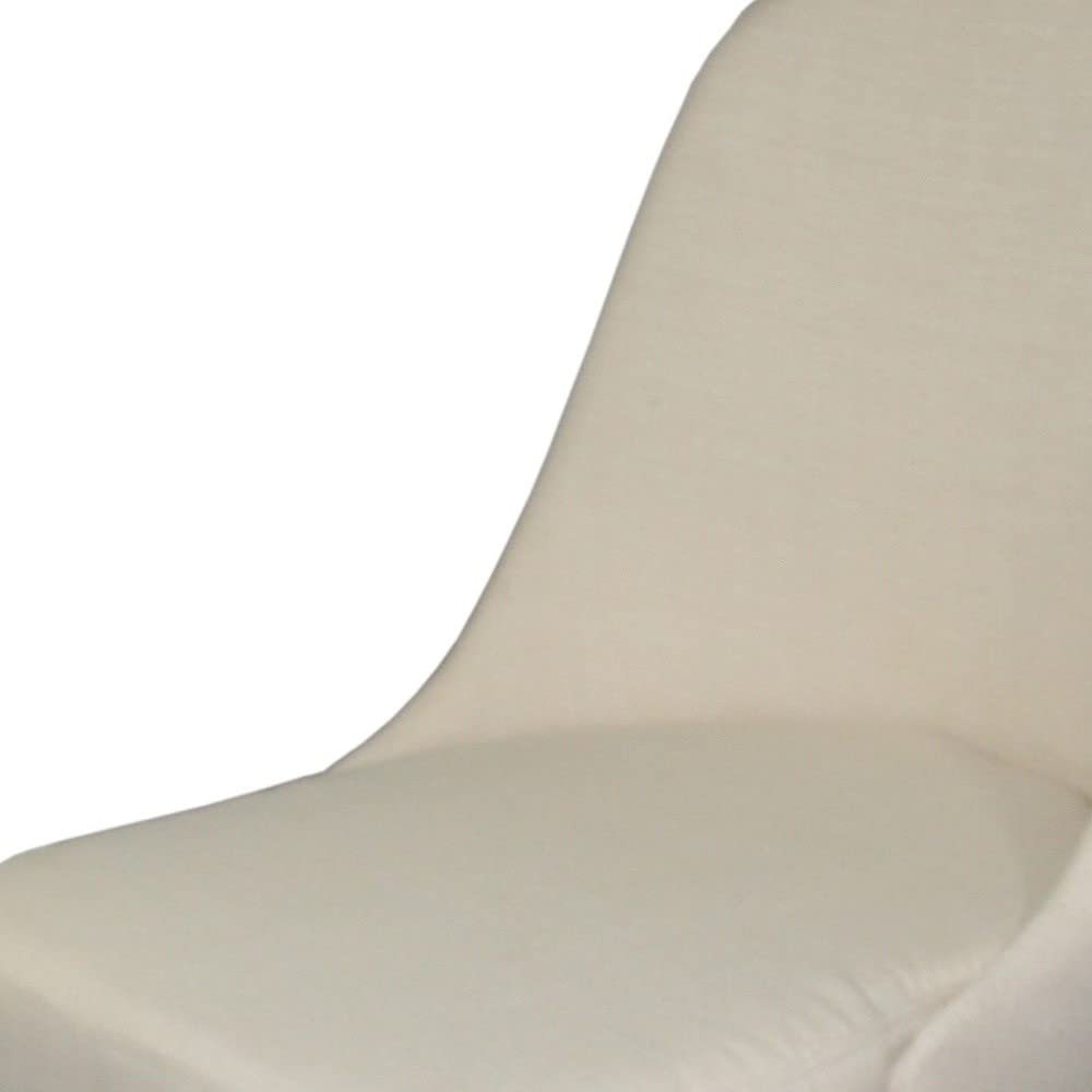 Give your guests a peek at your taste in luxury furniture and styles with this premium cream contemporary dining or accent chair. The armless chair features a classic polyester cotton linen fabric blend that has a slight wrap around the back for added comfort. Smooth curves and extended maple-finished legs give this chair a touch of modern detail and balance, making it a great choice for the dining table or as an accent in the living room, bedroom, or office. . 33.5 x 19 x 23