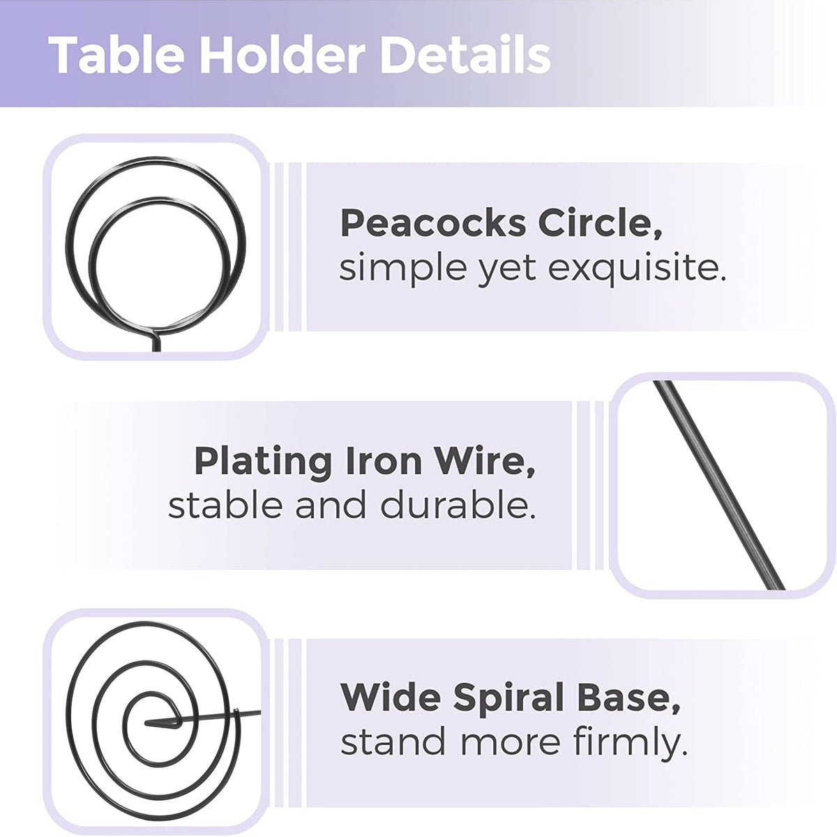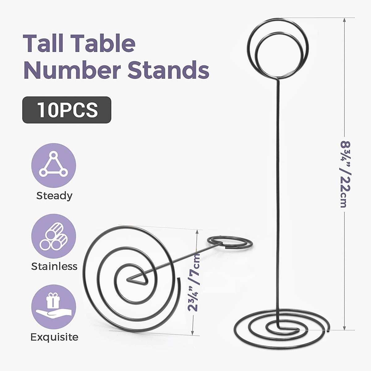 Homwanna Table Number Holders - Be A Beautiful Scenery In Your Eyes - Decorate All The Beauty. Table Number Card Holders - Specification: Color: Black Table Number Holder. Total Height: 8.75Inch Base Diameter: 2.75Inch Weight: 23G/Pcs Material: Metal Package Includes: 10 Pack Tall Table Top Number Stands Why Choose Homwanna Tall Picture Holders For Tables? * Taller Design - 8.75Inch Wire Photo Holders Tall Is Easier To Be Spotted In Every Occasions. * Stable Material - Made Of Plating Iron Wire, Table Sign Holders Metal Is Not Easy To Be Deformed Or Broken. * Wider Base Diameter - Gold Place Card Holder With 2.75Inch Base Can Stand More Firmly In Most Outdoor Occasions. Photo Card Holder - Wide Application: Reception Card Holder Wedding,Standing Photo Holders,Picture Stands For Table,Place Card Holders For Table,Gold Menu Card Holder,Pastry Card Holder,Centerpiece Picture Holder,Menu Card Holder,Silver Place Card Holders. Table Number Holders For Weddings: Wedding Is A Sacred Occasion. Tall Gold Table Card Holders Is Great Ideal For Displaying Table Weddings Cards. Embellish Every Sweet Wedding! Black Number Table Holder For Home: Every One Has So Many Happy Memories In The Photos! Photo Clip Holders Help To Decorate Your Photos More Exquisite And Hold Every Wonderful Moment For You. Spiral Sign Holder For Office: We Have A Lot Of Work Or Things To Do Every Day,Table Top Card Holders Show An Outstanding Memo On Your Office Desk And Remind You To Meet Every Challenges In Daily Life. Black Place Card Holder For Party: A Happy Party Needs Your Careful Arrangement, Unique Place Card Holders Make Your Parties/Birthday More Colorful And Meaningful. Warm Note: 10Pcs Black Picture Holders With Clips Are Packaged Together When Shipping - Please Take Picture Centerpiece Holder Out One By One Patiently.