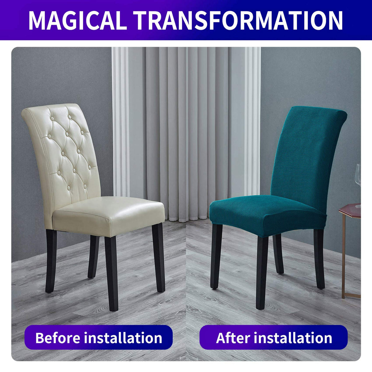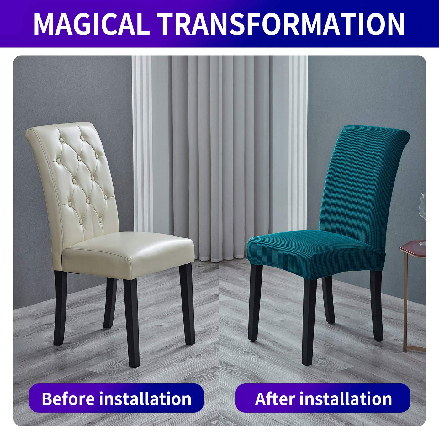 Q: Are these chair covers easy to install?A: Yes, the Howhic Stretch Chair Covers are designed for easy installation. Simply stretch the covers over your dining room chairs, adjusting them to fit snugly for a clean and stylish look.