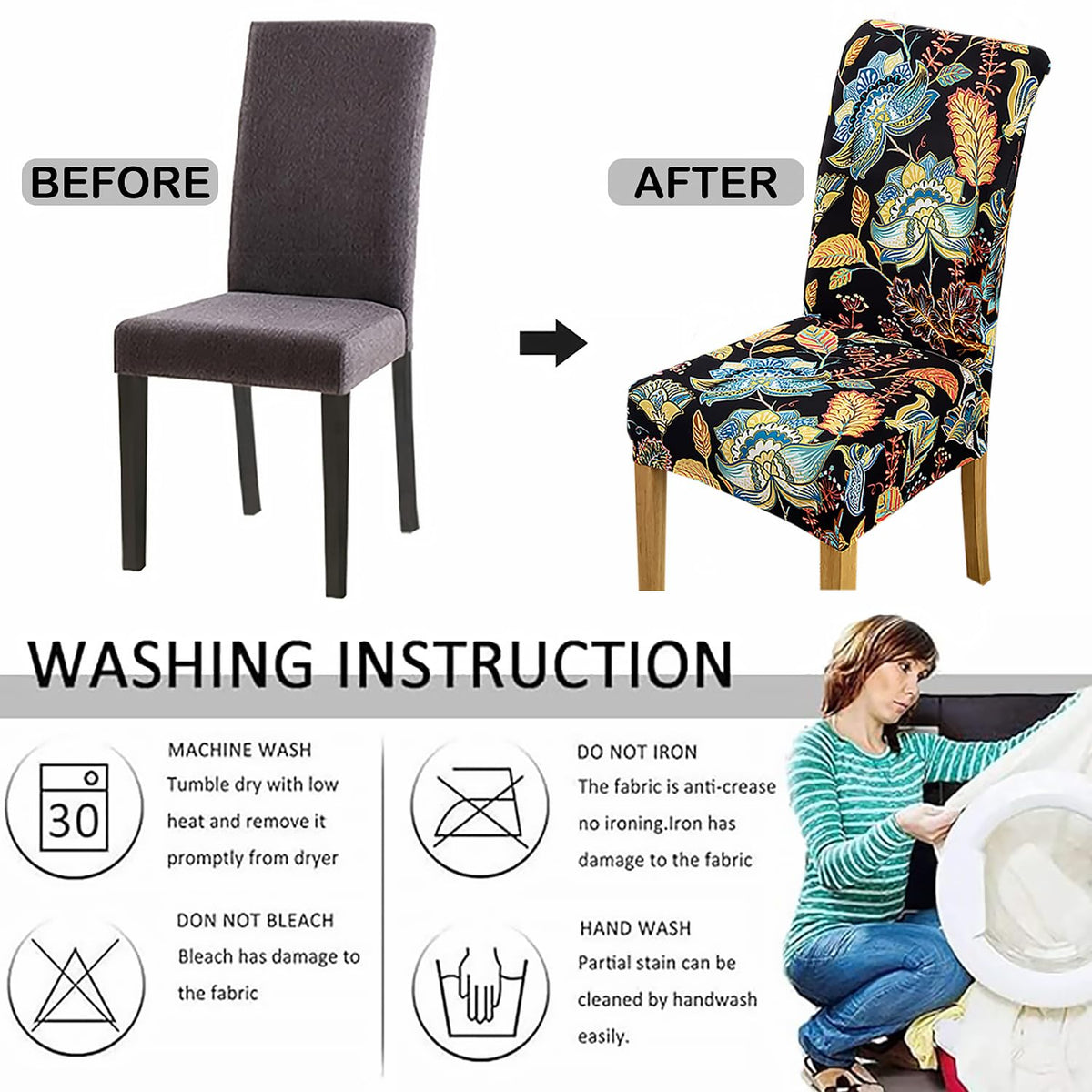 Why You Choose Hzdhclh Chair Covers??Machine Washable,Easy To Cleaning And Wash,Let Your Old Or Ugly Chair Look Like New One And More Beautiful. Also Can Prevent Your Chair From Kids Scribble Or Pet'S Scratch And Bite.?Hzdhclh Chair Covers For Dining Room Are Stylish And Elegant Design.?Hzdhclh Chair Covers For Dining Room Are Soft, Comfortable, Durable And Wrinkle Resistant For Most Chairs. Family, Hotel And Office Space For Decorative In The Best Option.Machine Washableeasy To Care,You Can Hand Wash Or Machine Wash With Cold Water.Do Not Bleach.No Ironingnote:1. There May Be A Slight Color Difference Due To Different Monitors And Shooting Lights.2.Please Allow 0.5-1In Error Due To Manual Measurement.