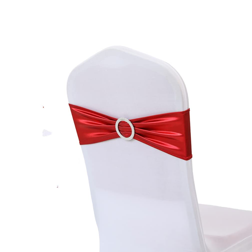 Ieventstar Chair Sashes Chair Bow Chair Decoration Spandex Stretch Band With Buckle Slider For Wedding Party Events 10Pcs (Metallic Red)