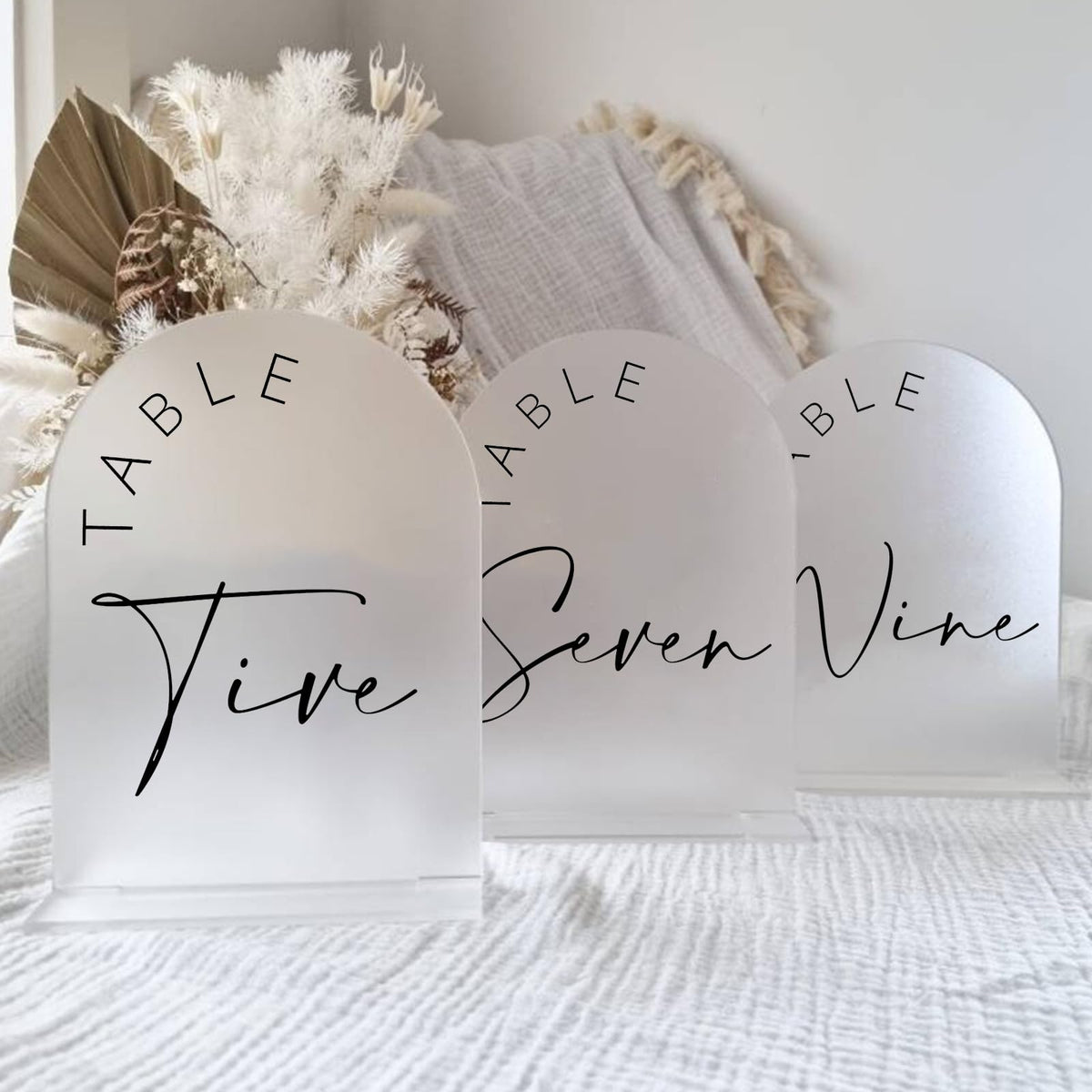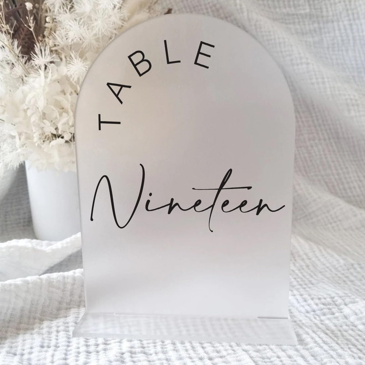 Frosted Arch Wedding Table Numbers 1-15 With Stands