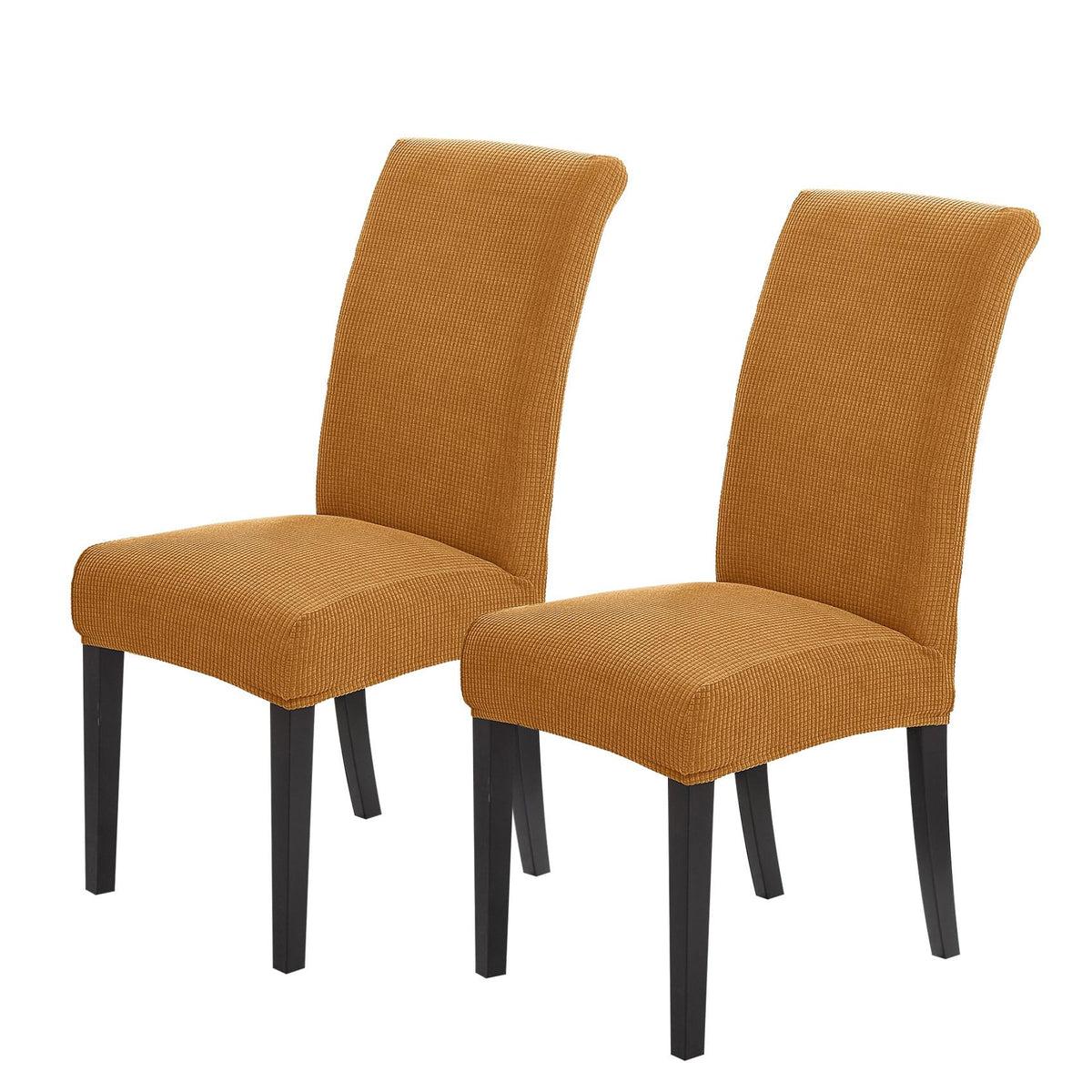 Joccun Chair Covers For Dining Room Set Of 2,Water Repellent Dining Chair Slipcovers Stretch Dining Room Chair Covers Seat Protector,Washable Parsons Chair Cover For Home,Hotel,Banquet(Gold,2 Pack)
