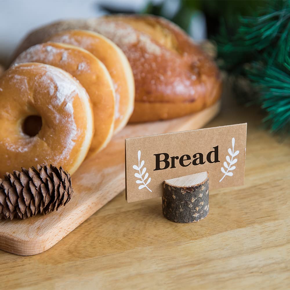 Jofefe 20Pcs Wood Place Card Holders And 24Pcs Kraft Table Place Cards, Rustic Table Number Holders, Food Labels, Name Card Phot