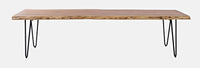 Breathtaking solid wood perfectly preserved in its most Natural state makes this live edge bench not only beautiful, but completely one-of-a-kind. Our artisans select slabs of acacia hardwood and then leave the Natural edge of the tree whole to create a truly stunning visual effect. This unique bench measures approximately 70'' Long by 16'' Wide as the Dimensions of each piece will be slightly unique due to the live edge. Sleek hairpin legs bring attention to the rich finish that makes every single inch of the hardwood grain stand out and look amazing. This dining table will make a stunning addition to any home decor with a combination of modern design and Natural beauty. Available in Natural, slate and light Chestnut finishes.