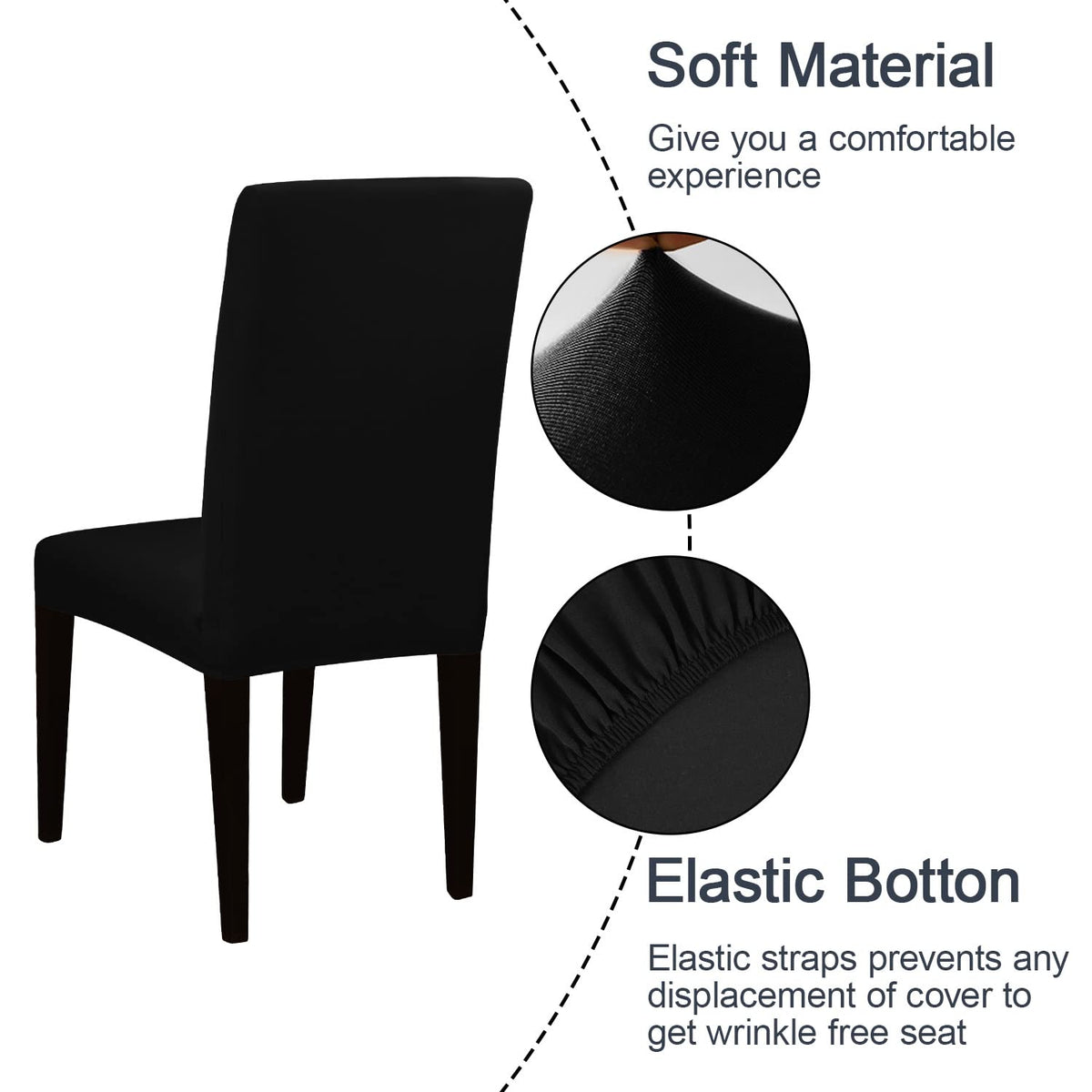 High Quality: 92% polyester 8% spandex fabric, soft and comfortable,durable, wrinkle-resistant, anti-pilling. Perfect Fit : Elastic band is sewn on bottom hem of the cover, will provide the furniture a whole protection and tight effect, showcase the personalized style. Protect your Furniture : Protect your chair from spills, stains, dirt, grime, wear and tear, old and shabby.Great for homes with children and pets. Available with 3 pack choice: 1 Pack; 2 Pack; 4 Pack Easy Care:Keeping your dining chair cover looking beautiful is simple. Machine wash on cold and tumble dry low, as often as you need!