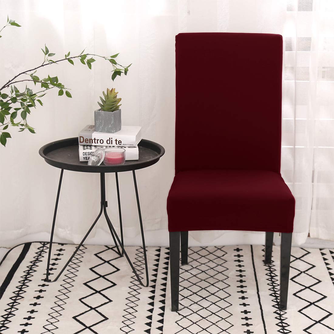 Jqinhome 6 Pcs Dining Chair Slipcover,High Stretch Removable Washable Chair Seat Protector Cover For Home Party Hotel Wedding Ceremony (Burgundy)