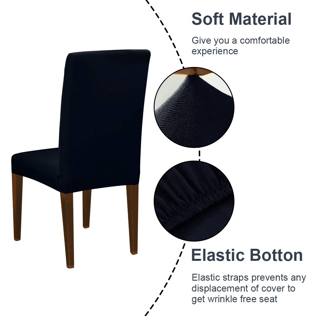 High Quality: 92% polyester 8% spandex fabric, soft and comfortable,durable, wrinkle-resistant, anti-pilling. Perfect Fit : Elastic band is sewn on bottom hem of the cover, will provide the furniture a whole protection and tight effect, showcase the personalized style. Protect your Furniture : Protect your chair from spills, stains, dirt, grime, wear and tear, old and shabby.Great for homes with children and pets. Available with 3 pack choice: 1 Pack; 2 Pack; 4 Pack Easy Care:Keeping your dining chair cover looking beautiful is simple. Machine wash on cold and tumble dry low, as often as you need!