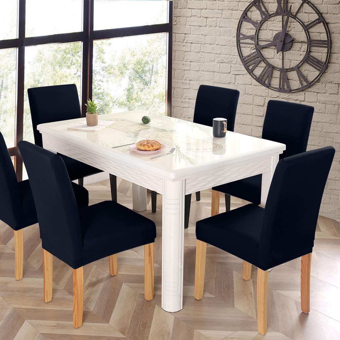Jqinhome 6 Pcs Dining Chair Slipcover,High Stretch Removable Washable Chair Seat Protector Cover For Home Party Hotel Wedding Ceremony (Navy Blue)