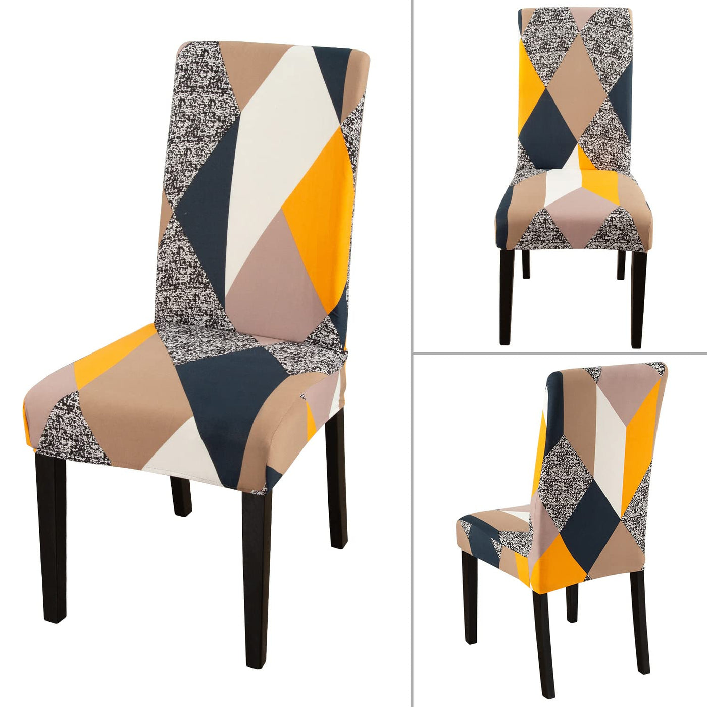 Jqinhome Dining Chair Covers Set Of 4,Magic Cube High Stretch Removable Washable Parsons Chair Slipcover For Dining Room Home Party Hotel Wedding Ceremony (Geometric Patterns)