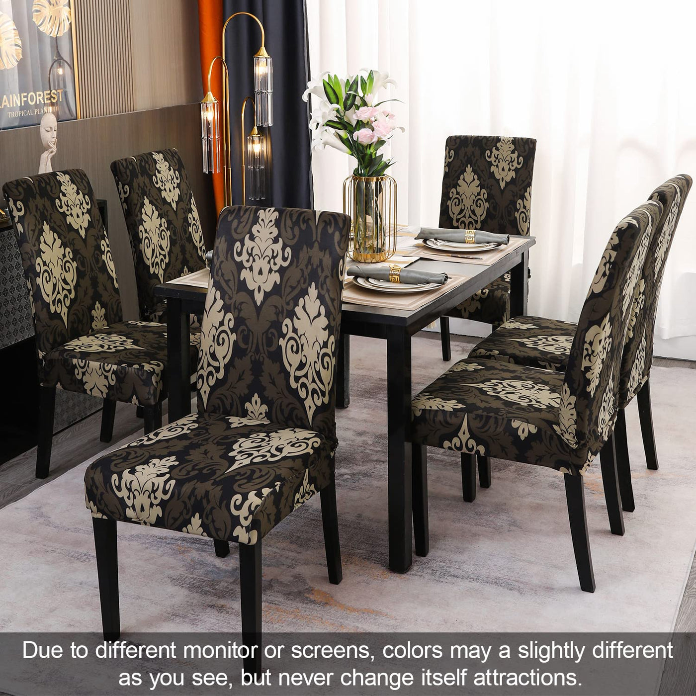Jqinhome Dining Chair Slipcover, High Stretch Removable Washable Chair Seat Protector Cover Set Of 6,Chair Covers For Dining Room, Kitchen,Home Party,Wedding Ceremony(Luxe Black, 6Pc)