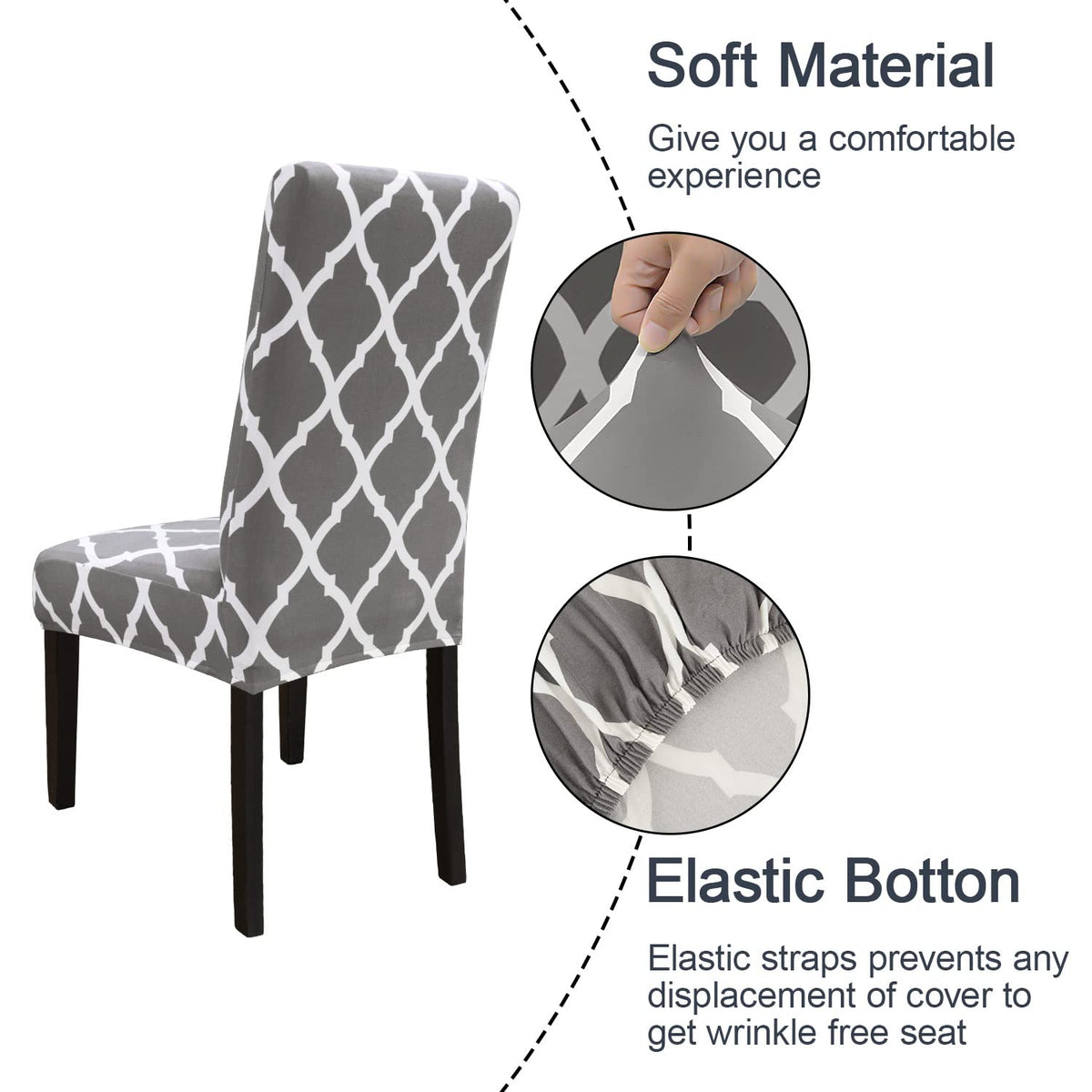 High Quality: 92% polyester 8% spandex fabric, soft and comfortable,durable, wrinkle-resistant, anti-pilling. Perfect Fit : Elastic band is sewn on bottom hem of the cover, will provide the furniture a whole protection and tight effect, showcase the personalized style. Protect your Furniture : Protect your chair from spills, stains, dirt, grime, wear and tear, old and shabby.Great for homes with children and pets. Available with 3 pack choice: 4 Pack; 6 Pack; 8 Pack Easy Care:Keeping your dining chair cover looking beautiful is simple. Machine wash on cold and tumble dry low, as often as you need!
