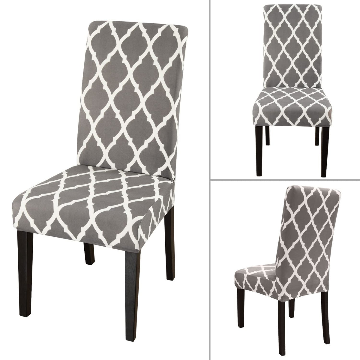 Jqinhome Dining Room Chair Covers Set Of 8, High Stretch Chair Slipcover Removable Washable Chair Seat Protector Cover For Home Party Hotel Wedding Ceremony (Grey White)