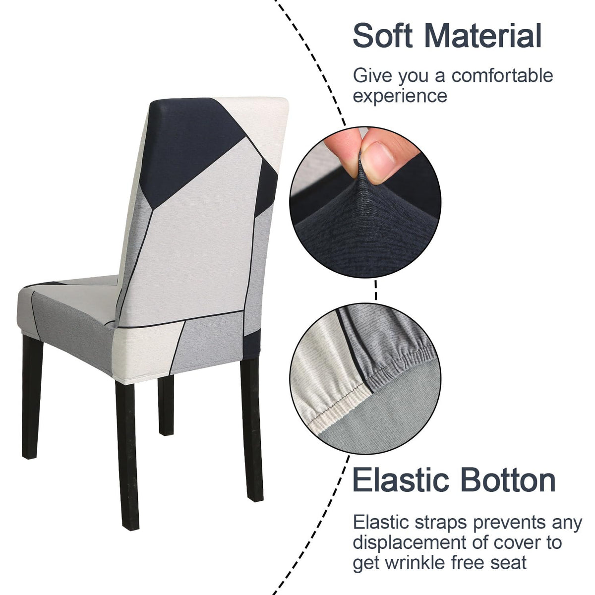 Jqinhome Pattern Chair Covers For Dining Room Set Of 4, High Stretch Removable Washable Parsons Chair Slipcover For Home Party Hotel Wedding Ceremony (White Grey,4Pcs)