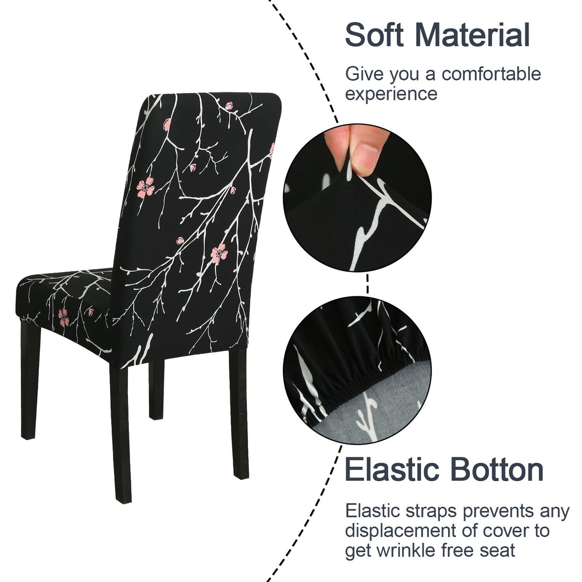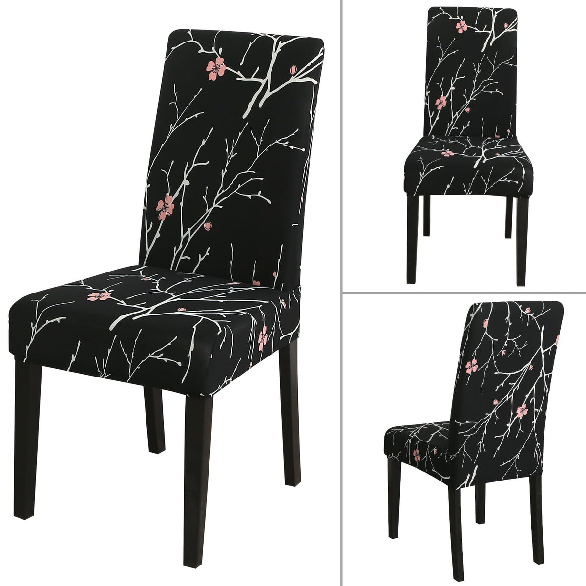Jqinhome Pattern Chair Covers For Dining Room Set Of 6, High Stretch Removable Washable Parsons Chair Slipcover For Home Party Hotel Wedding Ceremony (Flourish Black,6Pcs)