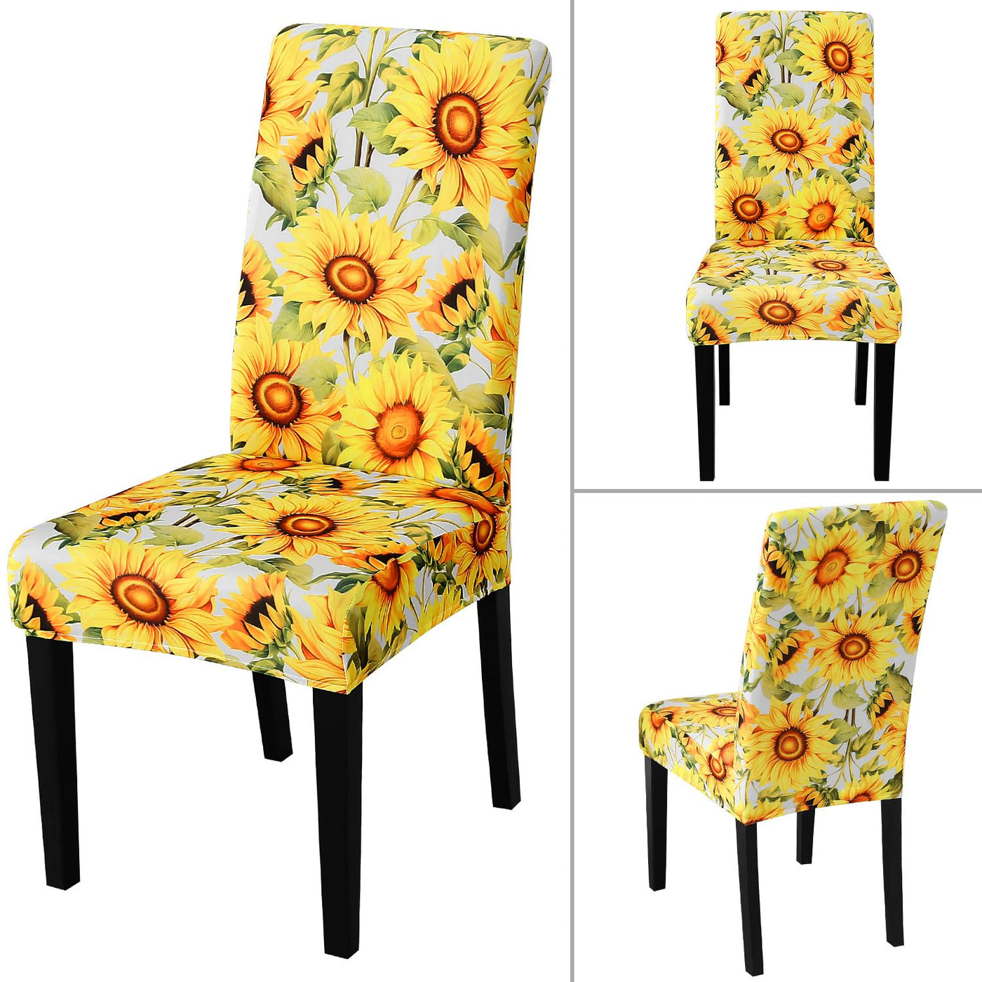 Jqinhome Pattern Chair Covers For Dining Room Set Of 6, High Stretch Removable Washable Parsons Chair Slipcover For Home Party Hotel Wedding Ceremony (Sunflower,6Pcs)