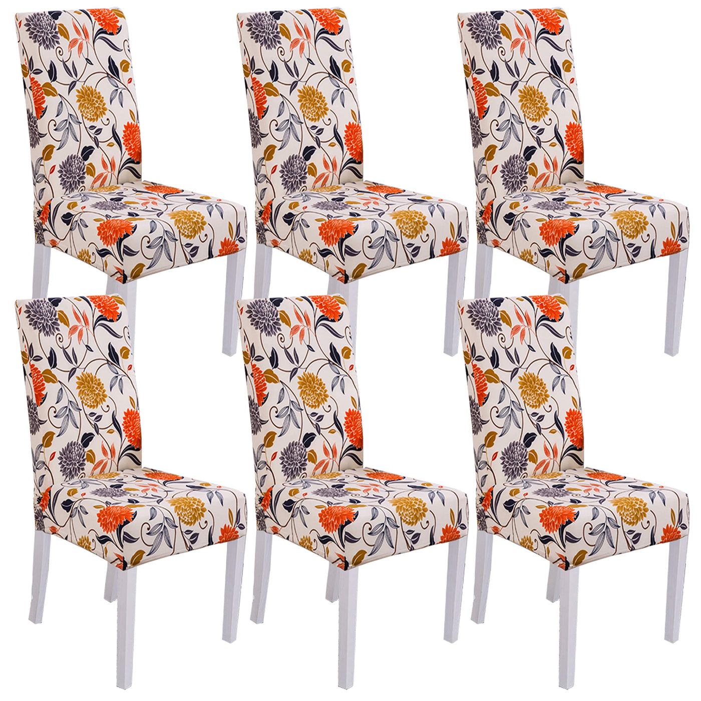 Lalluxy Stretchy Parson Chair Slipcovers For Dining Room Chair Seat Covers Chair Protectors For Party Pet Protection Universal Fit Soft Polyester (Set Of 6, Orange Flowers)