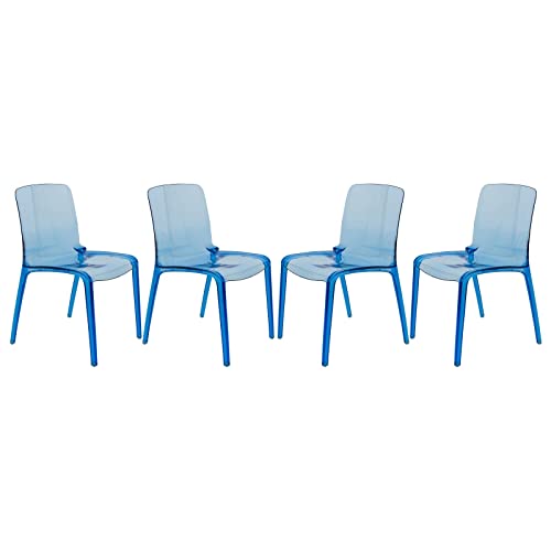 LeisureMod Adler Mid-Century Modern Dining Side Chair, Set of 4 (Transparent Blue)