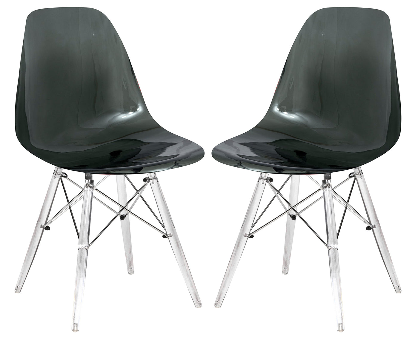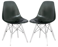 Leisuremod Dover Molded Side Chair With Acrylic Legs Set Of 2 Transparent Black