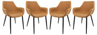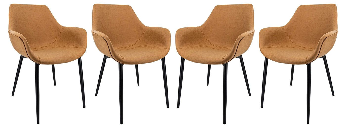 Leisuremod Markley Modern Leather Dining Armchair Kitchen Chairs With Metal Legs Set Of 4, Light Brown