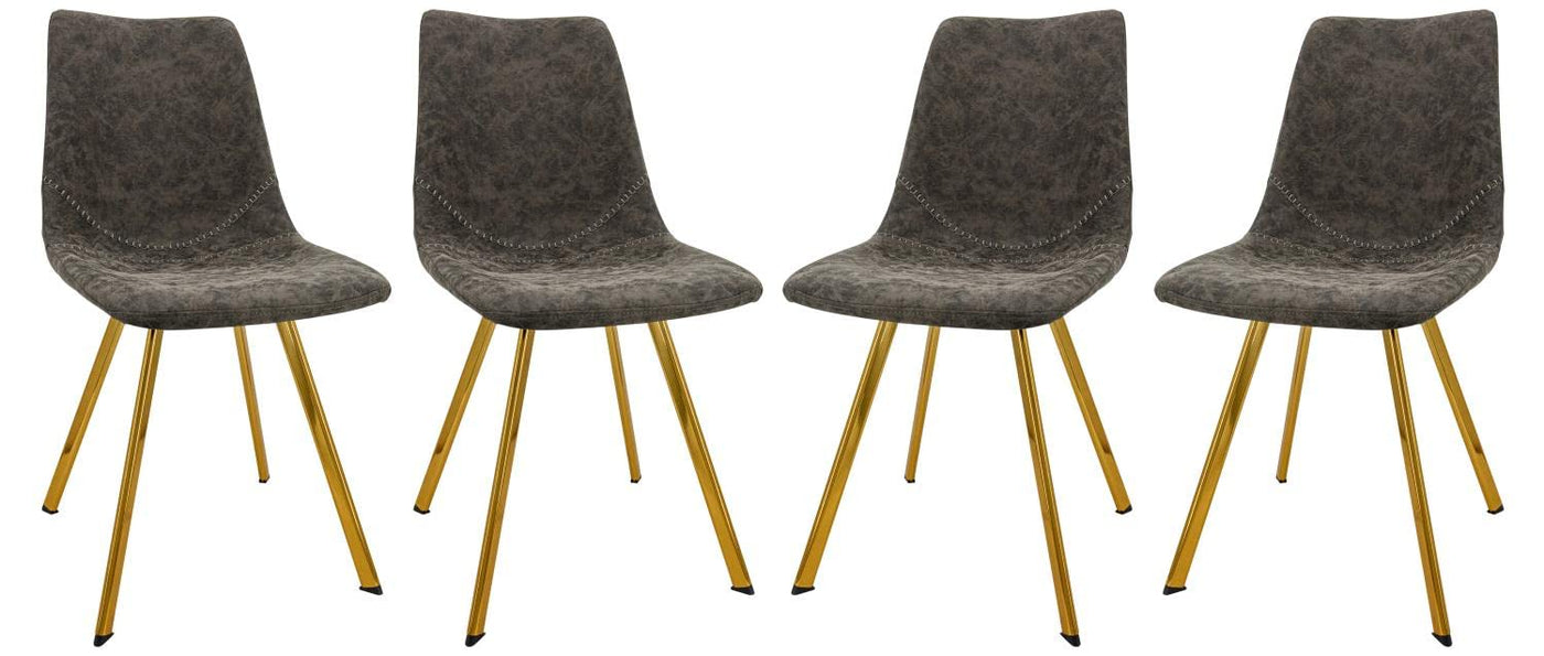Leisuremod Markley Modern Leather Dining Chairs Kitchen Chairs With Gold Legs Set Of 4 (Olive Green)
