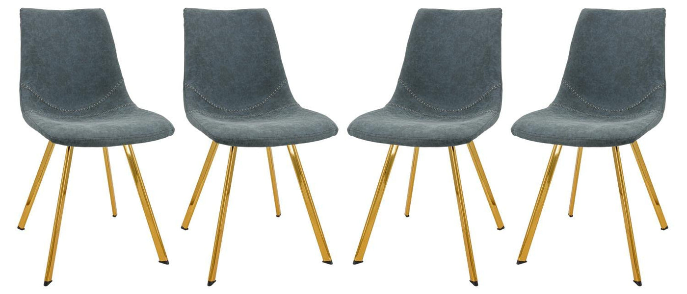 Leisuremod Markley Modern Leather Dining Chairs Kitchen Chairs With Gold Legs Set Of 4 (Peacock Blue)