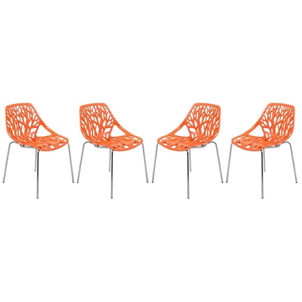 Leisuremod Modern Asbury Dining Chair With Chromed Legs (Set Of 4), Orange