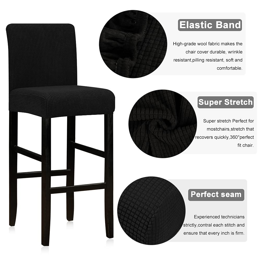 Lellen Reusable Pub Counter Stool Chair Covers Slipcover Stretch Removable Washable Dining Room Chair Covers Set Of 4 (Black)