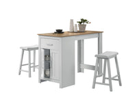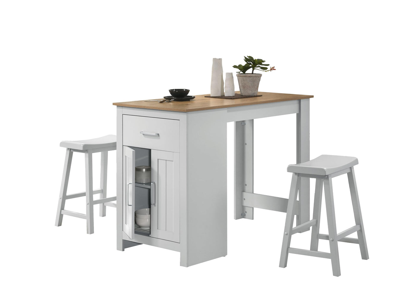 LILOLA LIVING Alonzo 47' Oak and White Finish Small Space Counter Height Dining Table with Cabinet, Drawer, and 2 Ergonomic Counter Stools