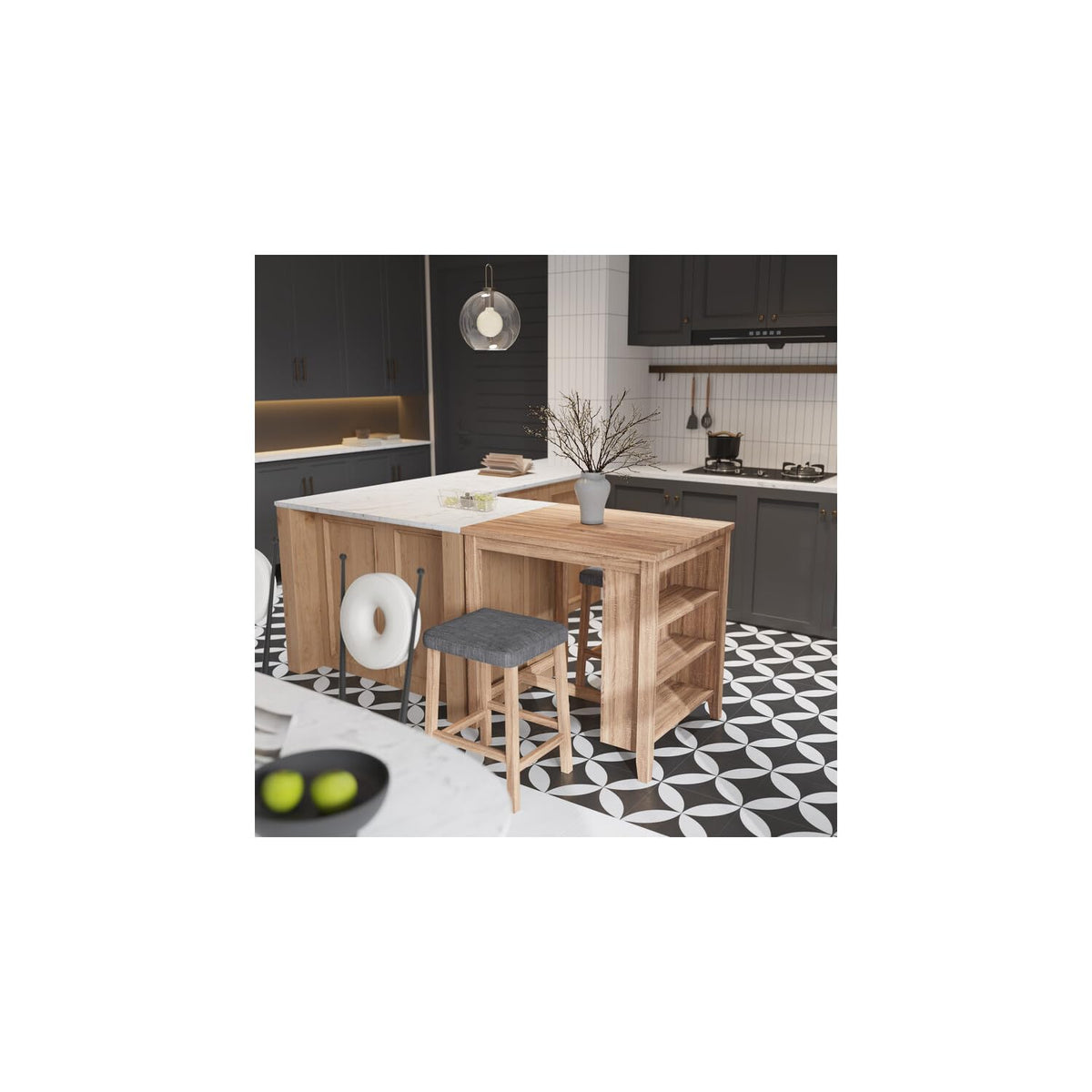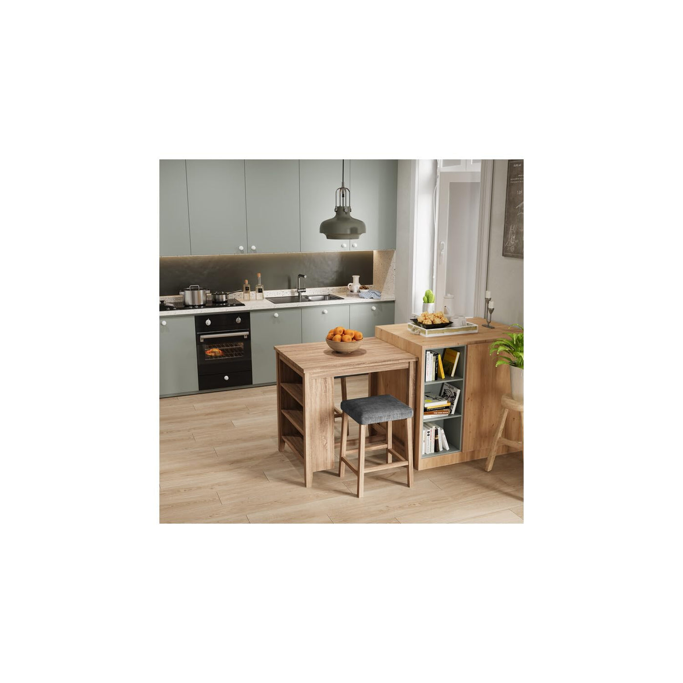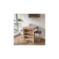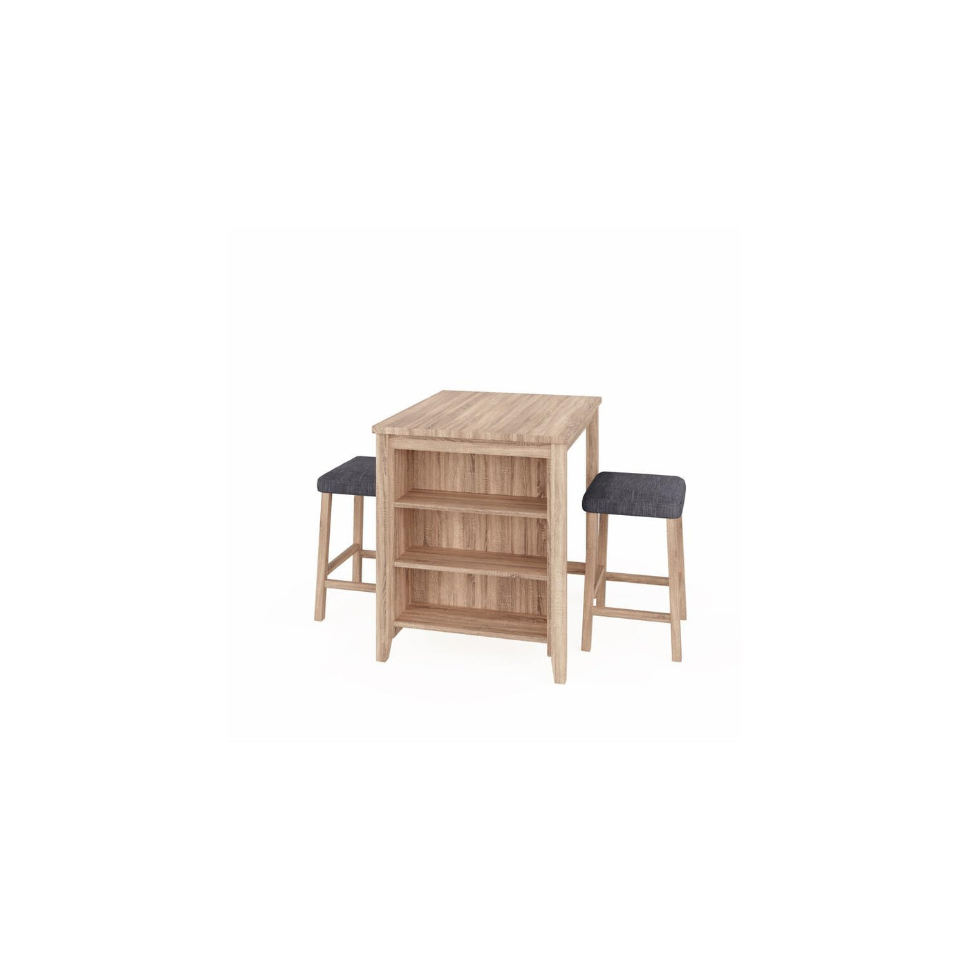 Step into a world of refined simplicity with the Dawson Counter Height Set, a tasteful addition to any dining area or kitchen nook. This exquisite set includes a counter-height table and two stools, each piece showcasing a rich oak finish that effortlessly complements a wide range of interior designs. Unique to this set, the table features a practical 3-shelf design, offering ample storage for dining necessities and decorative elements alike. The stools are adorned with linen upholstery, ensuring both elegance and comfort. These upholstered stools not only elevate the look of the set but also provide a cozy seating experience. Ideal for small dining rooms, kitchen nooks, or as a stylish accent to larger spaces, the Dawson Counter Height Set combines functionality with timeless style, making every dining experience memorable.