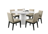 Revamp your dining area with the distinctive 7-piece table and chair set from the Jasper collection. This set redefines modern elegance with its striking round pedestal table that stands as a statement piece in any room. The accompanying chairs, designed for both comfort and style, feature sleek lines and a contemporary flair that perfectly harmonizes with the table. Together, they create an inviting and sophisticated dining space, ideal for hosting dinners or enjoying everyday meals. Make your dining room the talk of the town with this exceptional blend of design and functionality.