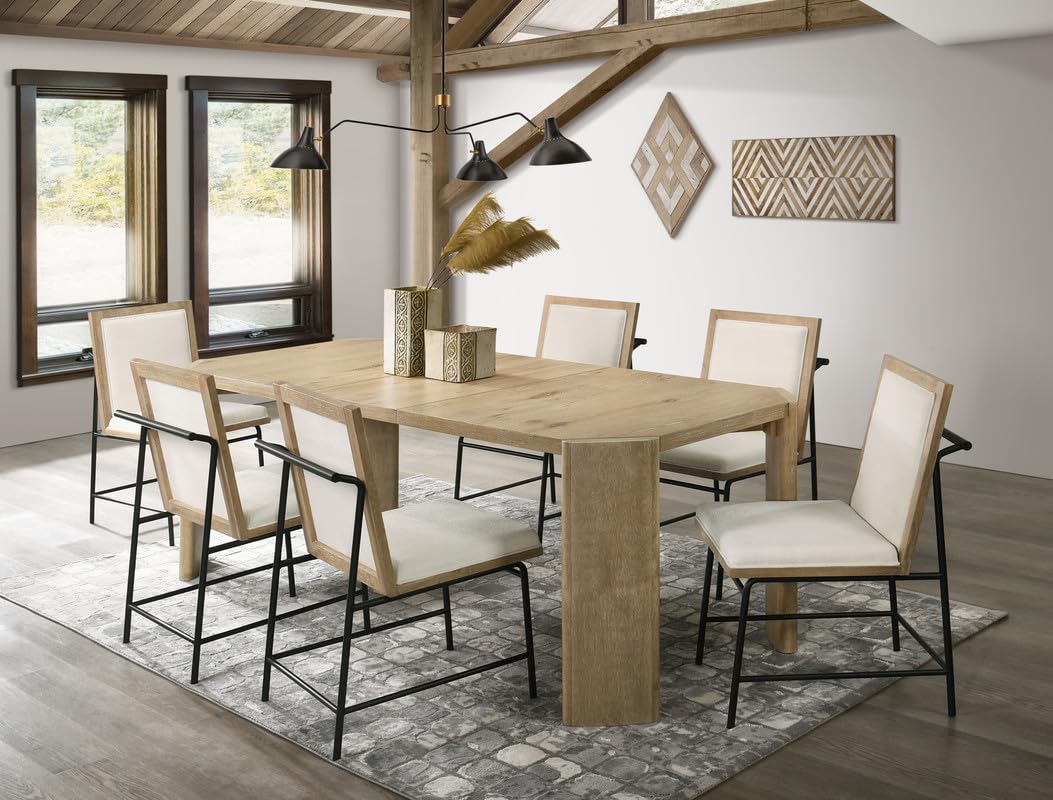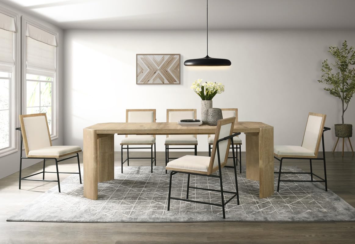 LILOLA LIVING Magnus Oak Finish 84' Extendable Rectangular Dining Table Set with Cream Color Upholstered Chairs