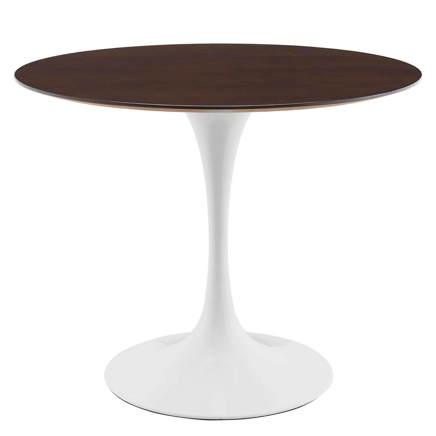 Reflecting a seamless organic shape and timeless form, the Lippa side table has become a symbol of modernism for over the past 60 years. Before its release, homes were filled with clunky remnants of an industrial age long gone by. But in order to advance into the new world, homes first had to transition from the traditional square table, into a piece that connoted progress. The base and dimensions are true to the original specifications, while the tables circular MDF top has an easy-to-clean wood grain veneer, and the metal tapered base features a powder-coated finish. Set Includes: One - Lippa 36'' Dining Table