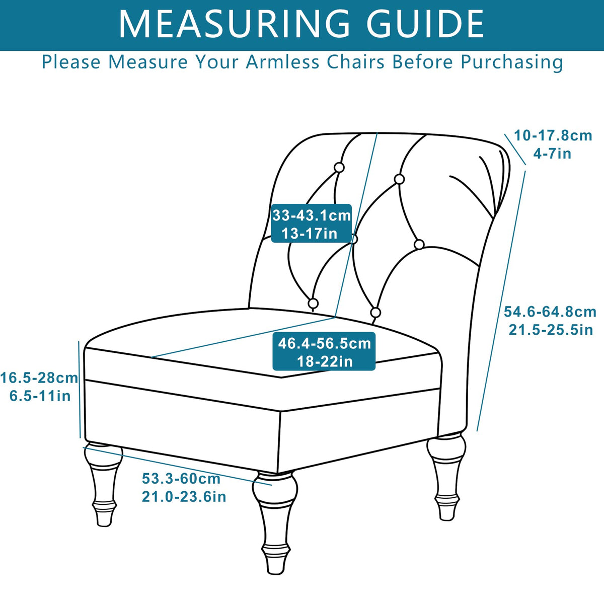 ?Material: 92% Polyester And 8% Spandex. Soft Material, Comfortable And Wrinkle Resistant, No Ironing Required. Stretchable Material, Stretch That Recovers Quickly, Secure Fit With Sewn-In Elastic Hem.Armless Accent Chair Slipcover Stretchable Fabric Turns Your Accent Wing Chair Into A Fire-New Look Without Any Trouble. | ?Size:Chair Covers For Armless Accent Chairs Suitable For Most Armless Chair:Back Length: 54.6-64.8Cm/21.5-25.5 Inch,Back Height(Above Seat): 33-43.1Cm/13-17Inch,Back Thickness: 10-17.8Cm/4-7 Inch,Seat Length: 53.3-60Cm/21-23.6Inch,Seat Width: 46.4-56.5Cm/18.25-22.25 Inch,Seat Thickness: 16.5-28Cm/6.5-11Inch.Please Check The Measurement Guide In The Item Picture Before Order. | ?Function:Variety Of Patterns Design, Transform Your Old, Damaged Or Ugly Accent Chair A New Look, Match Your Dining Room Theme, Slipcover For Armless Chair Protect Your Accent Chair From Food And Drink Spills, Pet Hair And Messy With Our Armless Slipcovers That Are Conveniently Machine Washable,Make Your Furniture Armless Accent Chairs Stays Looking Like New.Slipcovers Armless Accent Chair Is Easy To Install And Take Off, A Great Partner For Household Life. | ?Multiple Choices:Universal Slipper Chair Slipcover Various Patterns Give Your Chair A New Look.Liykimt Slip Covers For A Chair Fit For Most Accent Chairs, Dining Room& Kitchen Chairs. Liykimt Slipcovers For Chairs Can Be Used For Hotel, Wedding Banquet, Birthday Party, Thanksgiving & Christmas Dinner, And Family Dining Room Decoration, Etc. | ?Easy Care:Liykimt Single Armless Sofa Couch Cover Can Be Installed And Cleaned Easily. Machine Wash With Cold, Do Not Bleach, Tumble Dry Low, No Ironing.Please Note:Because The Light And Individually Difference Between Different Computer Screen Resolution,The Modern Slipper Chair Protector Color Showed In Screen May Slightly Different From The Actual One.