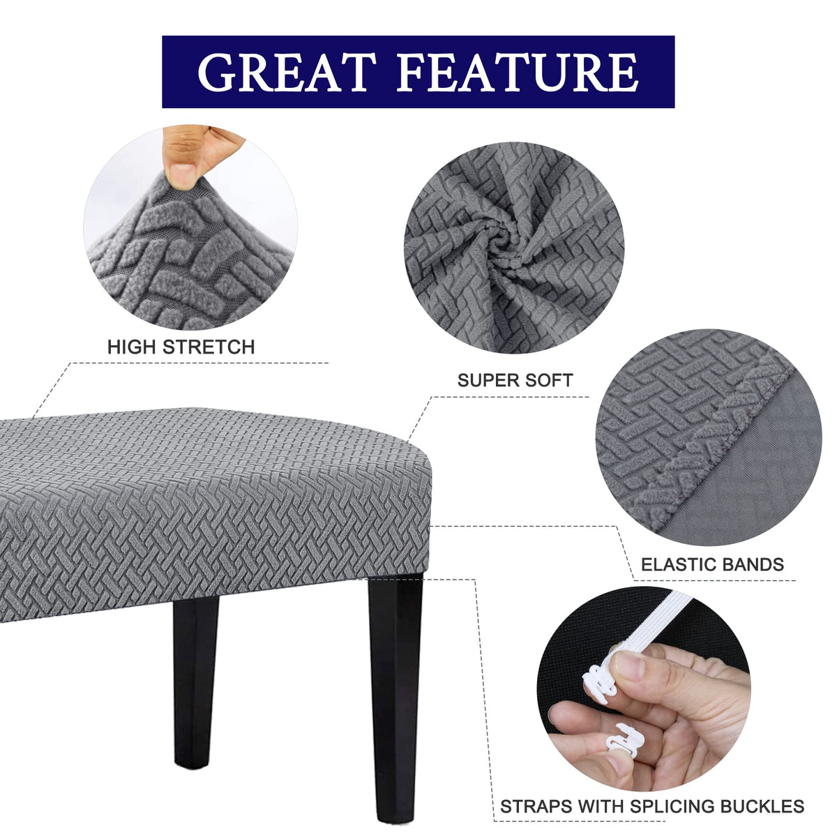 Q: What material are the Peomeise chair covers made of?A: The Peomeise chair covers are made of high-quality spandex, which is known for its durability and flexibility, ensuring a snug fit on various chair types.