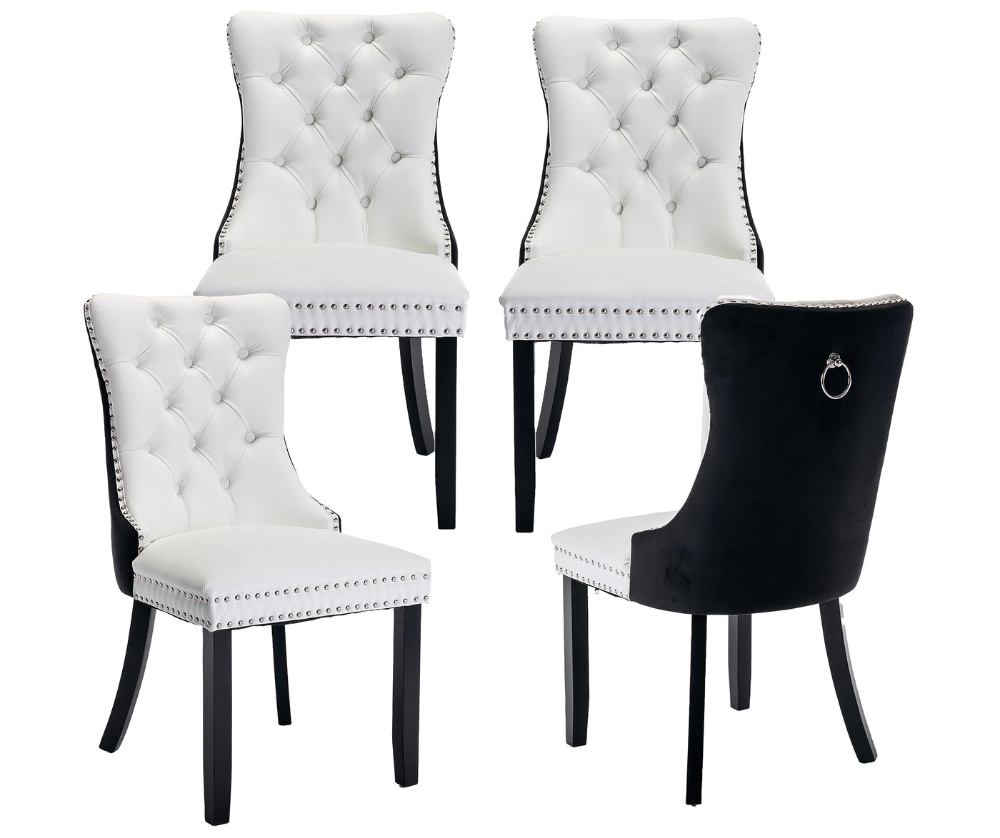 Lktart Dining Chairs Set Of 2 Velvet Upholstered Tufted Back With Nailhead Trim And Back Ring Pull Solid Wood Legs For Kitchen Bedroom Dining Room White + Black