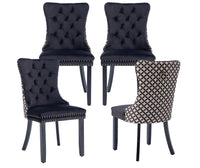 Lktart Tufted Dining Chairs Set Of 4, Velvet Dining Room Chair With Nailhead Ring Pull Trim, Upholstered Dining Chair With Solid Wood Legs For Kitchen Dining Room Black And Patterned