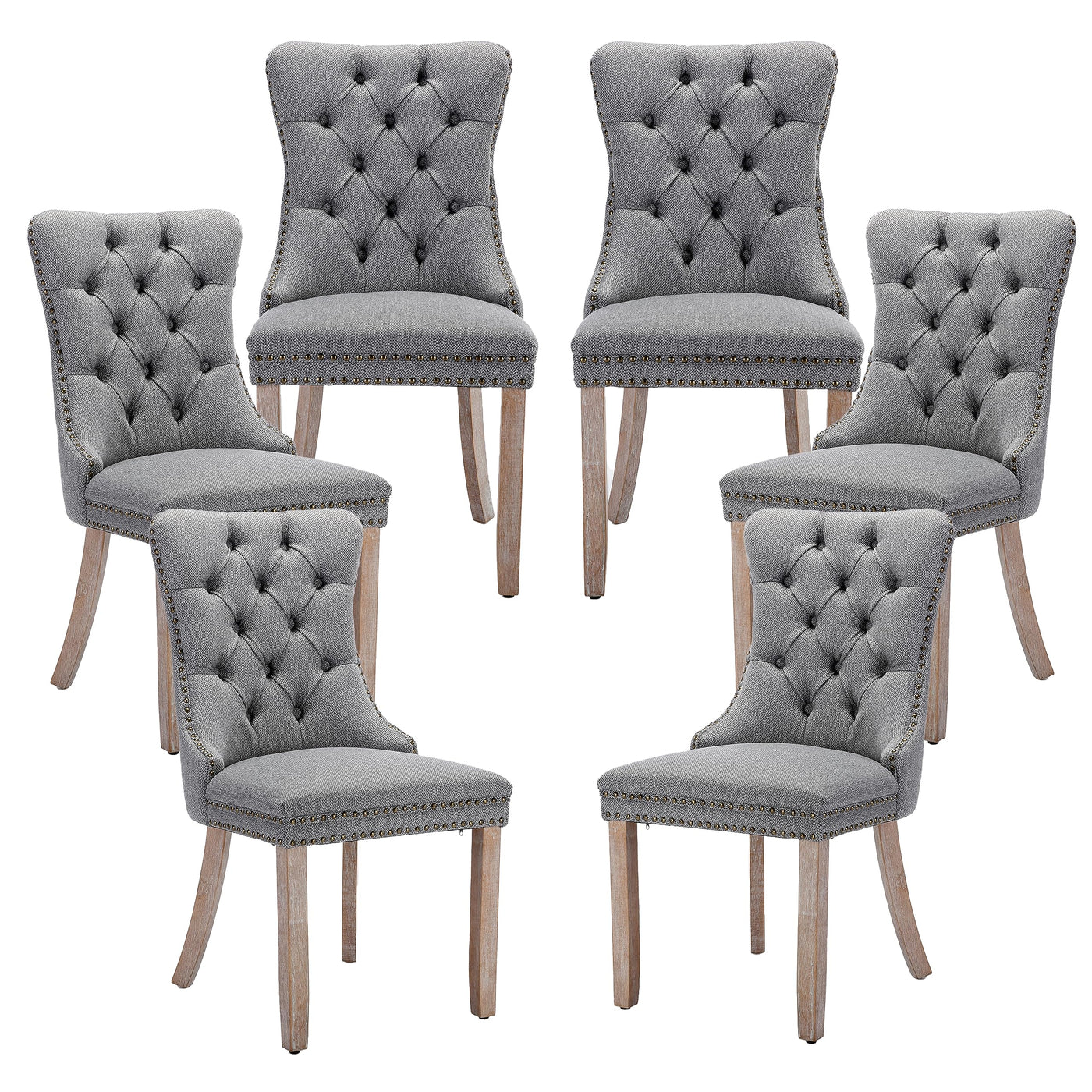 Lktart Upholstered Dining Chairs Set Of 6 With Button Tufted, Linen Chair With Solid Wood Legs For Dining Room, Living Room, Bed