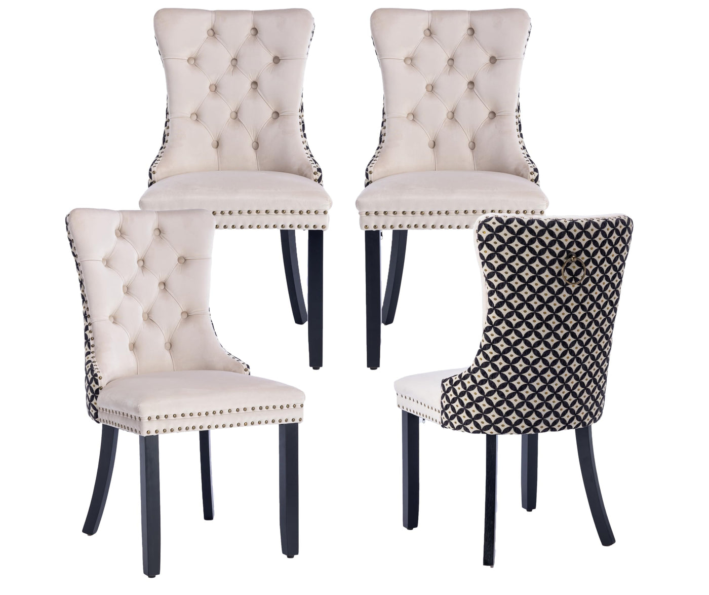 Lktart Velvet Dining Chairs Set Of 4, Tufted Dining Room Chair With Nailhead Ring Pull Trim, Upholstered Dining Chair With Solid Wood Legs For Kitchen Dining Room Beige And Patterned