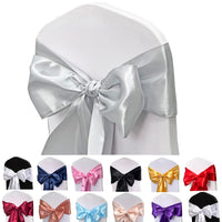 Maiangel Satin Chair Sashes Bows-12Pcs Chair Ribbon Ties Back Sash For Wedding Party Events Banquet Chair Cover Decoration (Silv
