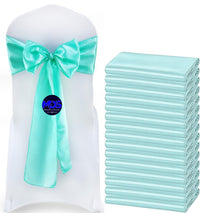 Mds Pack Of 125 Pcs Satin Chair Sashes Charmeuse Sateen Dining Chair Bows Ribbon Ties Back Sash For Wedding Party Birthday Home Hotel Restaurant Banquet Decoration (7 X 108 Inch, Sea Green)