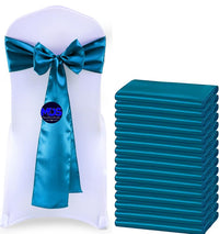 Mds Pack Of 25 Pcs Satin Chair Sashes Charmeuse Sateen Dining Chair Bows Ribbon Ties Back Sash For Wedding Party Birthday Home Hotel Restaurant Banquet Decoration (7 X 108 Inch, Dark Teal)