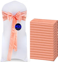 Mds Pack Of 300 Pcs Satin Chair Sashes Charmeuse Sateen Dining Chair Bows Ribbon Ties Back Sash For Wedding Party Birthday Home Hotel Restaurant Banquet Decoration (7 X 108 Inch, Peach)