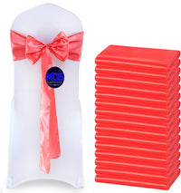 Mds Pack Of 50 Pcs Satin Chair Sashes Charmeuse Sateen Dining Chair Bows Ribbon Ties Back Sash For Wedding Party Birthday Home Hotel Restaurant Banquet Decoration (7 X 108 Inch, Coral)