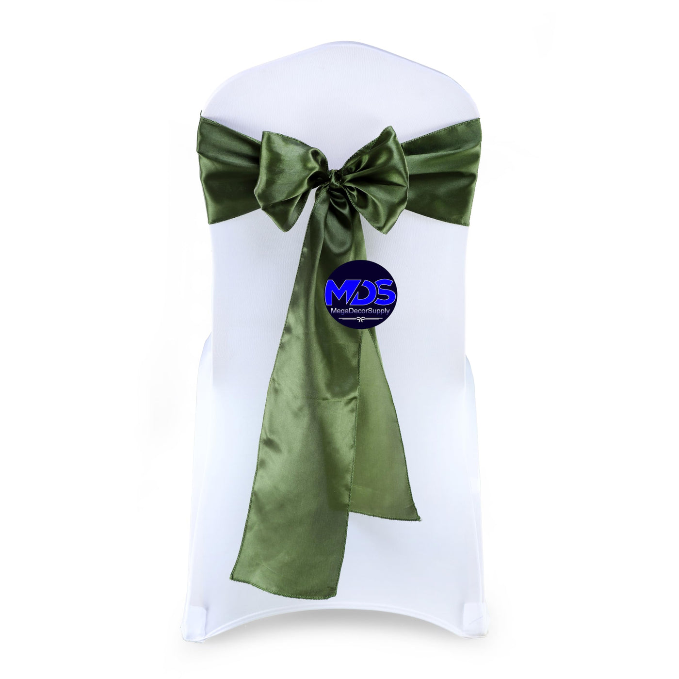 Mds Pack Of 50 Pcs Satin Chair Sashes Charmeuse Sateen Dining Chair Bows Ribbon Ties Back Sash For Wedding Party Birthday Home Hotel Restaurant Banquet Decoration (7 X 108 Inch, Olive Green)