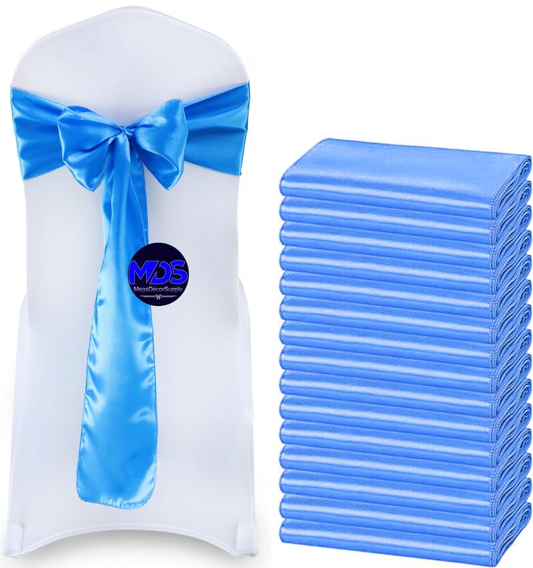 Mds Pack Of 75 Pcs Satin Chair Sashes Charmeuse Sateen Dining Chair Bows Ribbon Ties Back Sash For Wedding Party Birthday Home Hotel Restaurant Banquet Decoration (7 X 108 Inch, Blue)