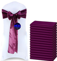 Mds Pack Of 75 Pcs Satin Chair Sashes Charmeuse Sateen Dining Chair Bows Ribbon Ties Back Sash For Wedding Party Birthday Home Hotel Restaurant Banquet Decoration (7 X 108 Inch, Eggplant)