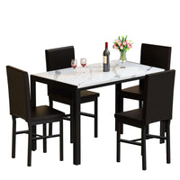 Mieres 5 Piece Faux Marble Dining Table Sets,Kitchen Table And Chairs For 4,With 4 Faux Leather Metal Frame Chairs For Dining Room, Kitchen, Breakfast Corner, Black Features: - Sturdy And Durable - Modern And Upscale Furniture - Great Decoration Furniture - Faux Marble Table Top, Smooth And Beautiful -4-Piece Metal Frame Dining Seats: Chairs Are Upholstered In Faux Leather - Easy To Assemble, And Assembled In Some Minutes. Specifications: -Table Weight Limit: 220Lbs -Chairs Weight Limit:250Lbs - Product Dimension: Table: (L) 48 Inch X (W) 28 Inch X (H) 30 Inch Gross Weight: 47.4Lbs Chair: (L) 15 Inch X (W) 15 Inch X (H) 38 Inch Gross Weight: 53.9Lbs Package Includes: -1Xmodern Faux Marble Dining Table,4 Faux Leather Metal Frame Chairs