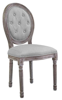 Revel In The Whispered Opulence Of The Arise Dining Armchair. Featuring A Fluted Wood Frame, Button Tufted Diamond Trim, Elegant Welting, Dense Foam Padding, An Upholstered Fabric Seat, And Scooped Armrests, This Oval Back Dining Or Accent Chair Elegantly Blends Old World Charm With Modern Intrigue. Designed With A Weathered Vintage French Look And An Undeniable Appeal, Arise Supports Up To 331 Pounds And Comes With Foot Pads To Preserve Flooring. Comes Fully Assembled.